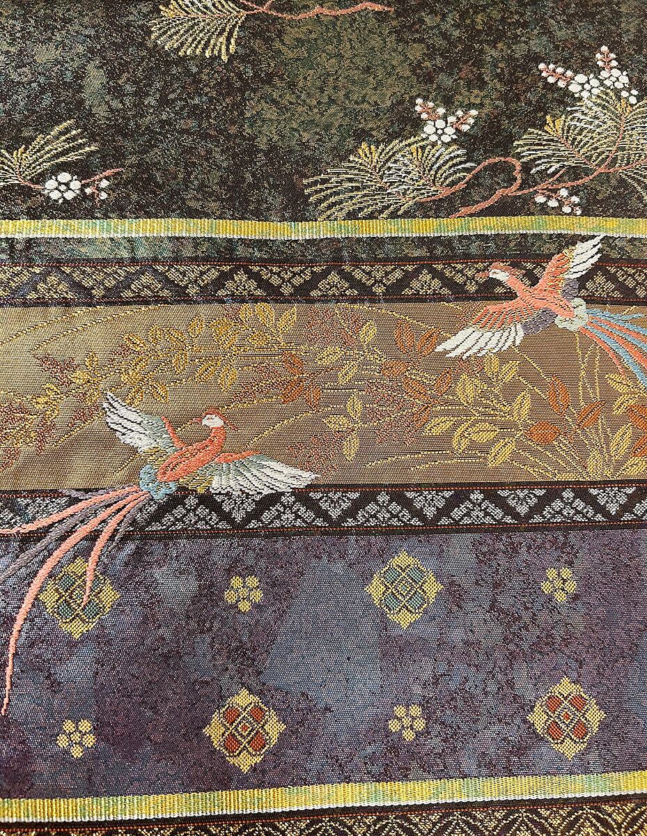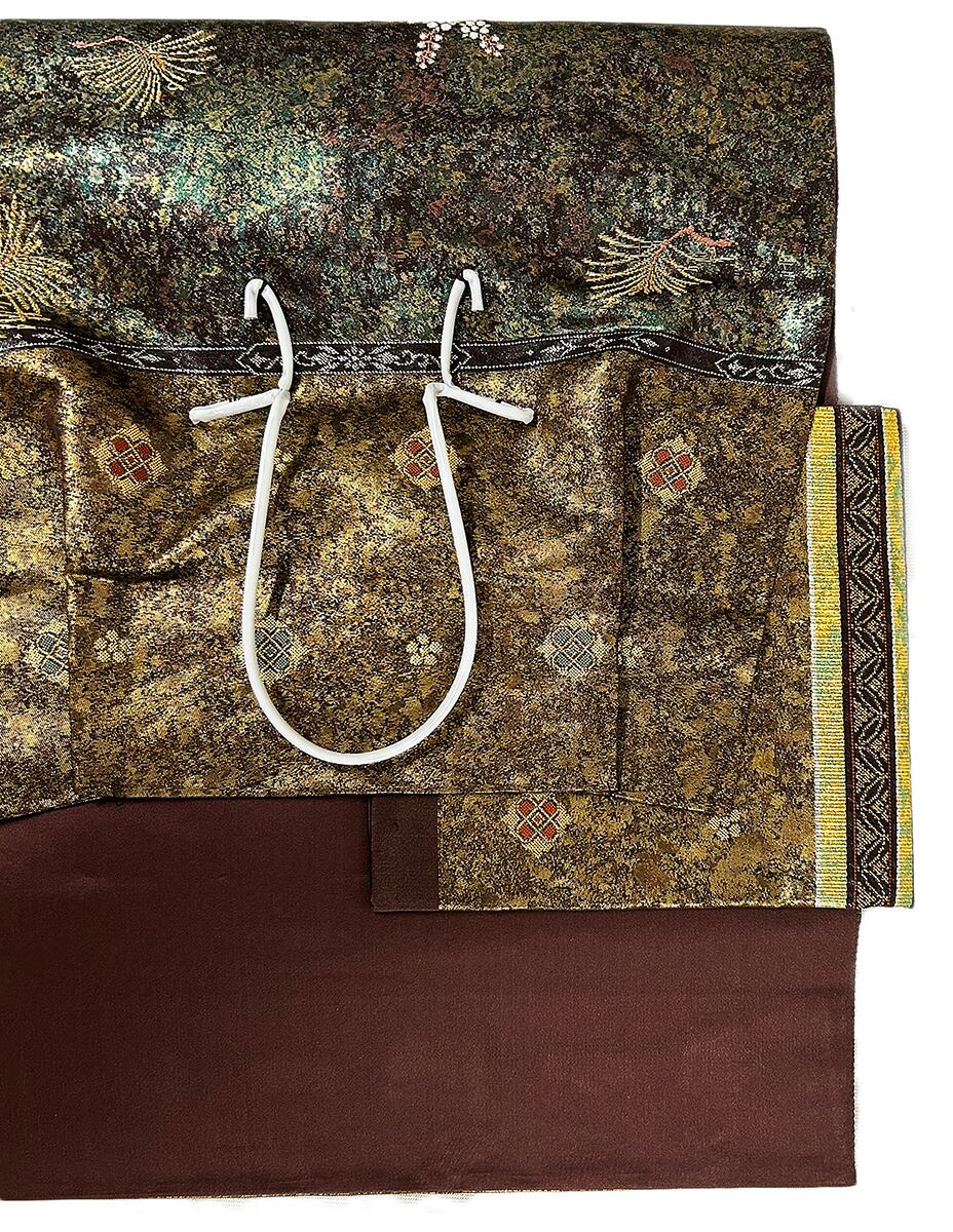 この素敵な作り帯は、着付けを習ったけれども帯が結べない方に最適なアイテムです。美しい尾長鳥と草花が金銀糸で表現されたデザインは、特別な日や普段の装いを引き立てる魅力を持っています。