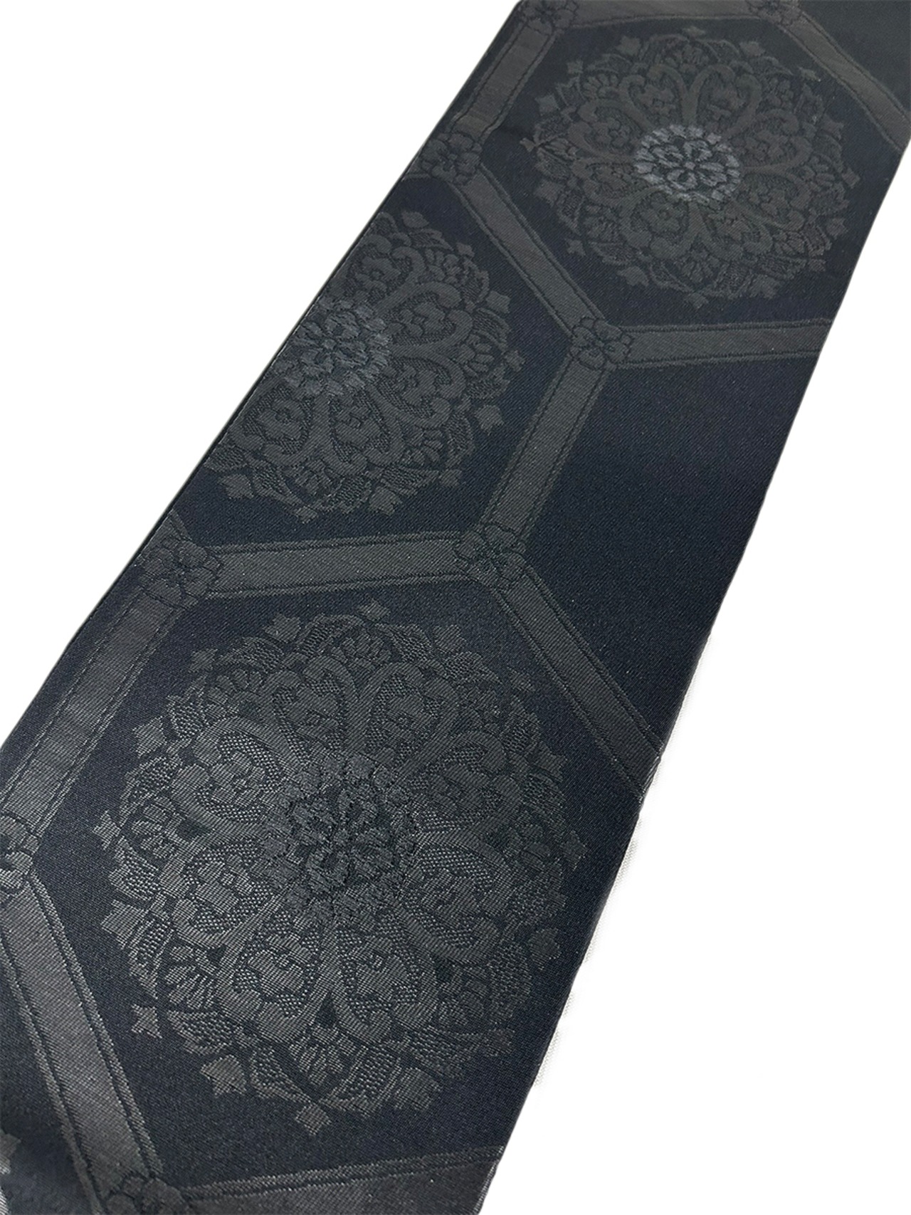 [桜楓] 結ばない帯 作り帯 正絹 二部式 喪服帯 ワンタッチ帯 流水に雲柄 S~5L 00214