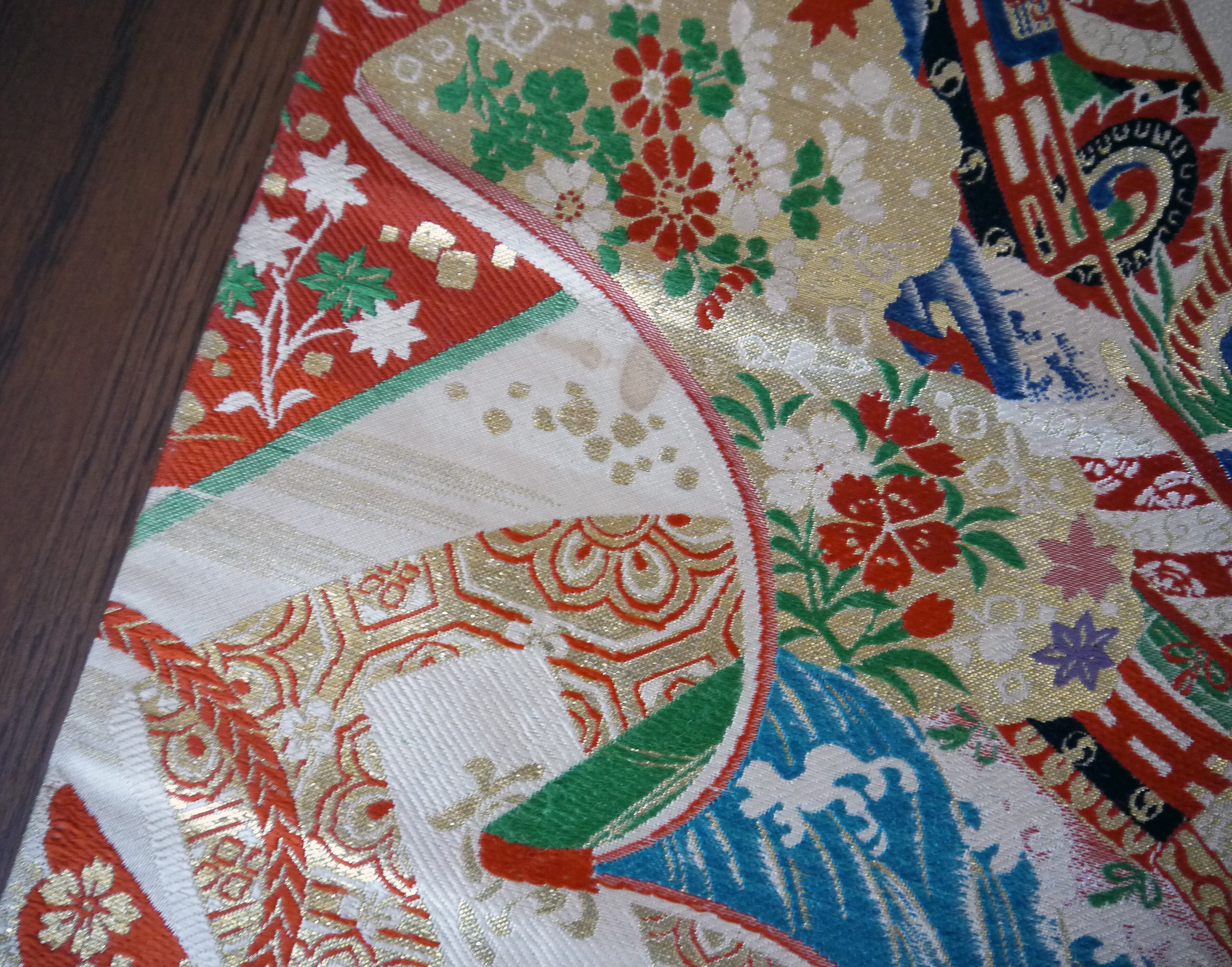 It is unused as a table center product using an antique Obi. We are producing it with original brand "Ohfu". It becomes a gorgeous Japanese souvenir with only one item. Because I am using antique Obi, there is a feeling of use. Please confirm with the photograph.